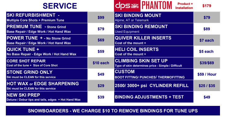 We’ll mount AT, Alpine and Telemark bindings you buy from us or elsewhere!